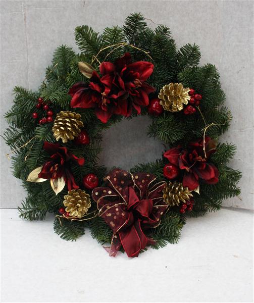Our traditional Christmas wreaths made from natural fresh pine with moss backing, designed and created to give a true traditional look.
